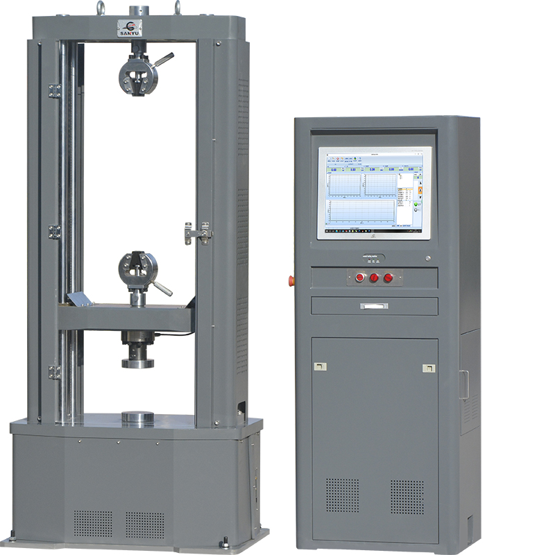該試驗機主機的設(shè)計考慮了擴展裝配其它夾具以完成更多試驗的可能。如:配裝彎曲夾具可做圓棒或板材的彎曲試驗,配裝剪切夾具可做圓棒剪切強度試驗,在壓縮空間中加配抗折、剪切、劈裂、剝離、撕裂、彈性模量儀等裝置可完成相應(yīng)的力學(xué)性能試驗。
